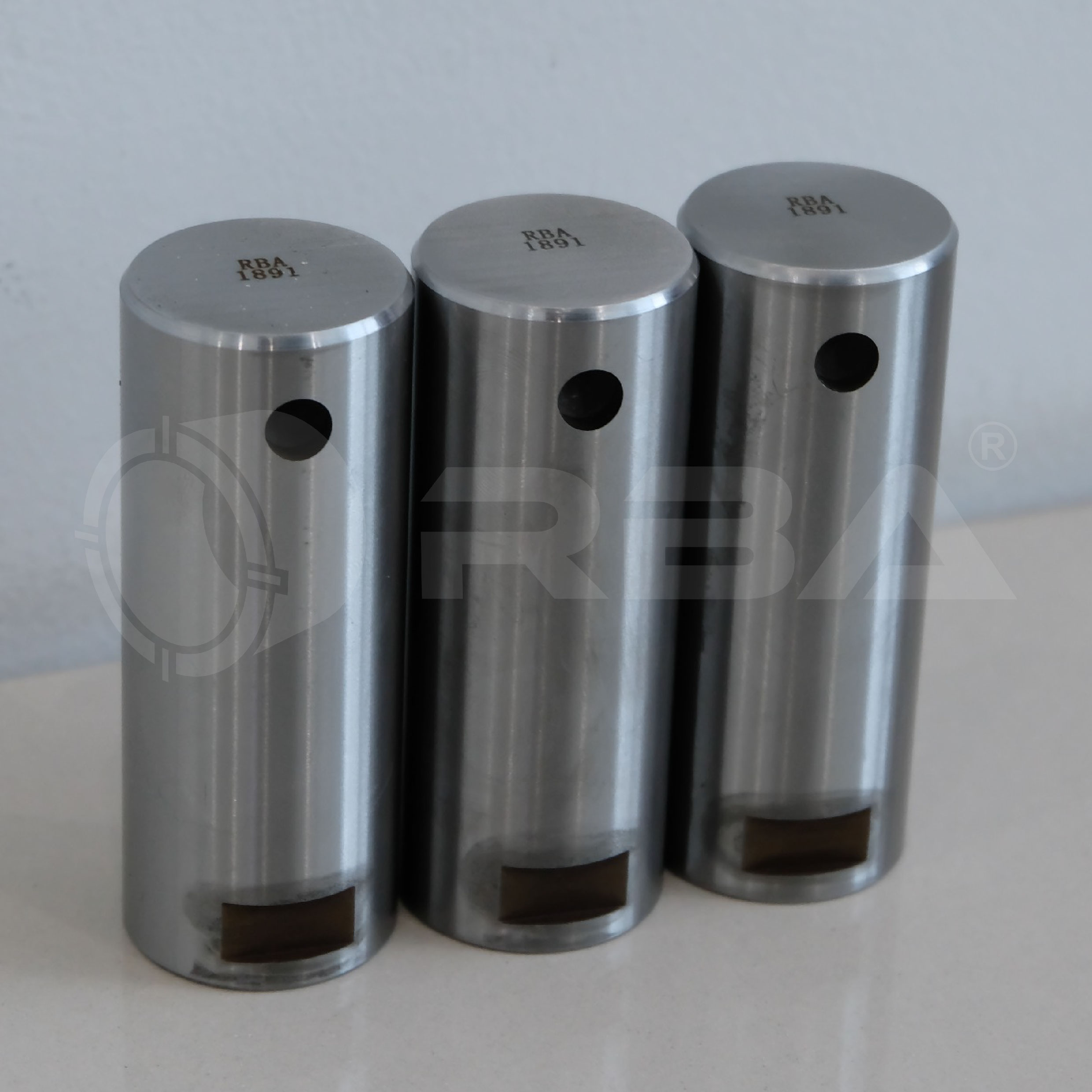 RBA offers customize shaft/pins according to your needs. Our standard steel alloy material is RBP-045 and RBP-440. Both materials can be heat treated by normalizing, annealing, quenching and tempering to improve the material strength and its properties